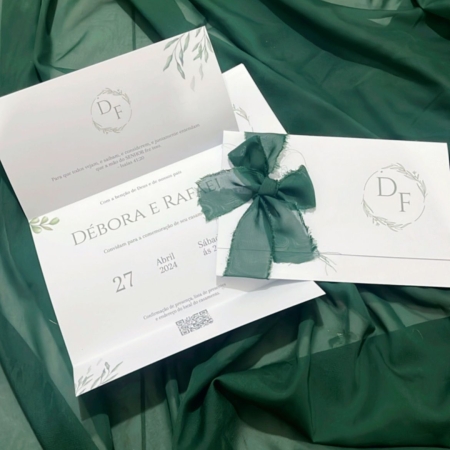• Convite com hotstamping envelope tradicional com hotstamping e fita de tecido