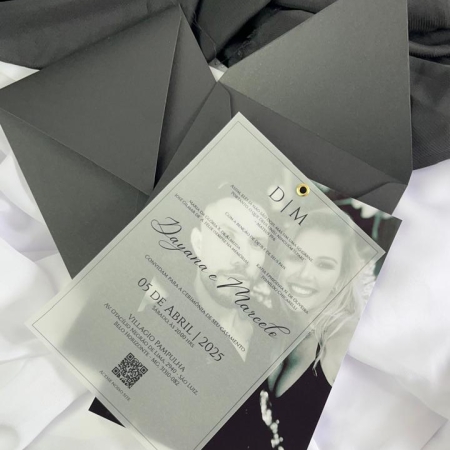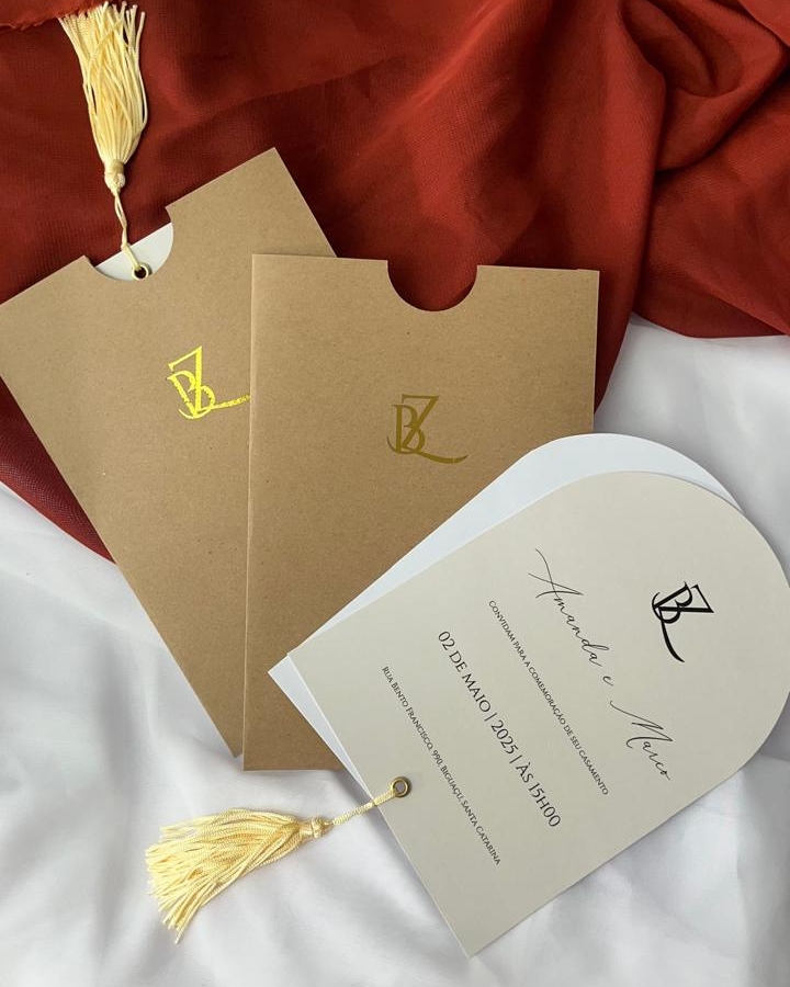 - convite Liso Branco 180g duas camadas com ilhos e tassel