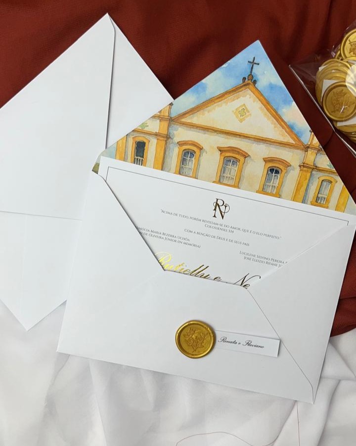 - convite branco liso 180g com hotstampinh (nome e/ou brasao)